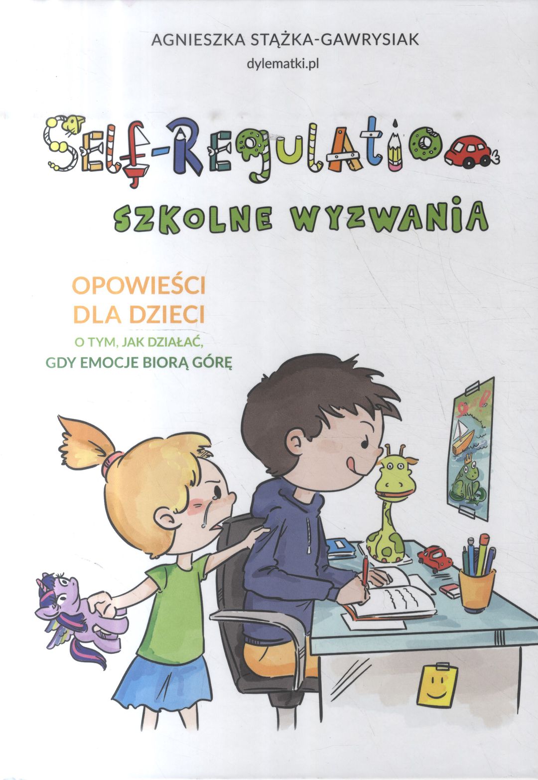 Poznaj historie, które mogą się przytrafić każdemu dziecku w wieku wczesnoszkolnym, jego rodzeństwu i opiekunom. Opowiadają o powszechnych trudnościach takich jak: organizacja zdalnej nauki w czasie pandemii, odreagowywanie emocji po powrocie ze szkoły, niska samoocena i niechęć do odrabiania prac domowych, dokuczanie ze strony rówieśników, silne emocje i zmiana zachowania związana z graniem w gry komputerowe. Ramki dla dorosłych opiekunów pozwalają zrozumieć trudności dziecka i wesprzeć je tak, aby radziło sobie coraz lepiej i rozwijało zdolność do samoregulacji (ang. self-regulation), czyli przywracania równowagi w obliczu stresorów.